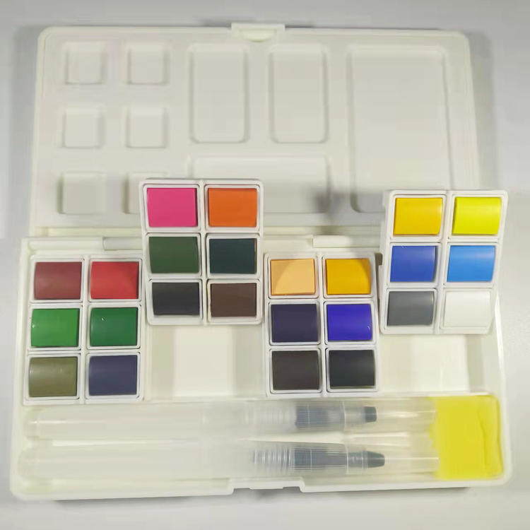 固体水彩、油画棒、粉饼、粉画棒、自吸水笔、文具套装等文具产品